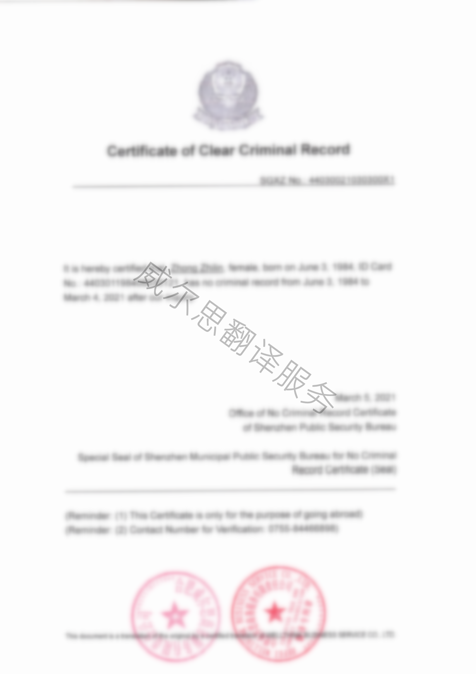 無(wú)犯罪記錄是辦理出國(guó)流程中經(jīng)常需要用到的文件。